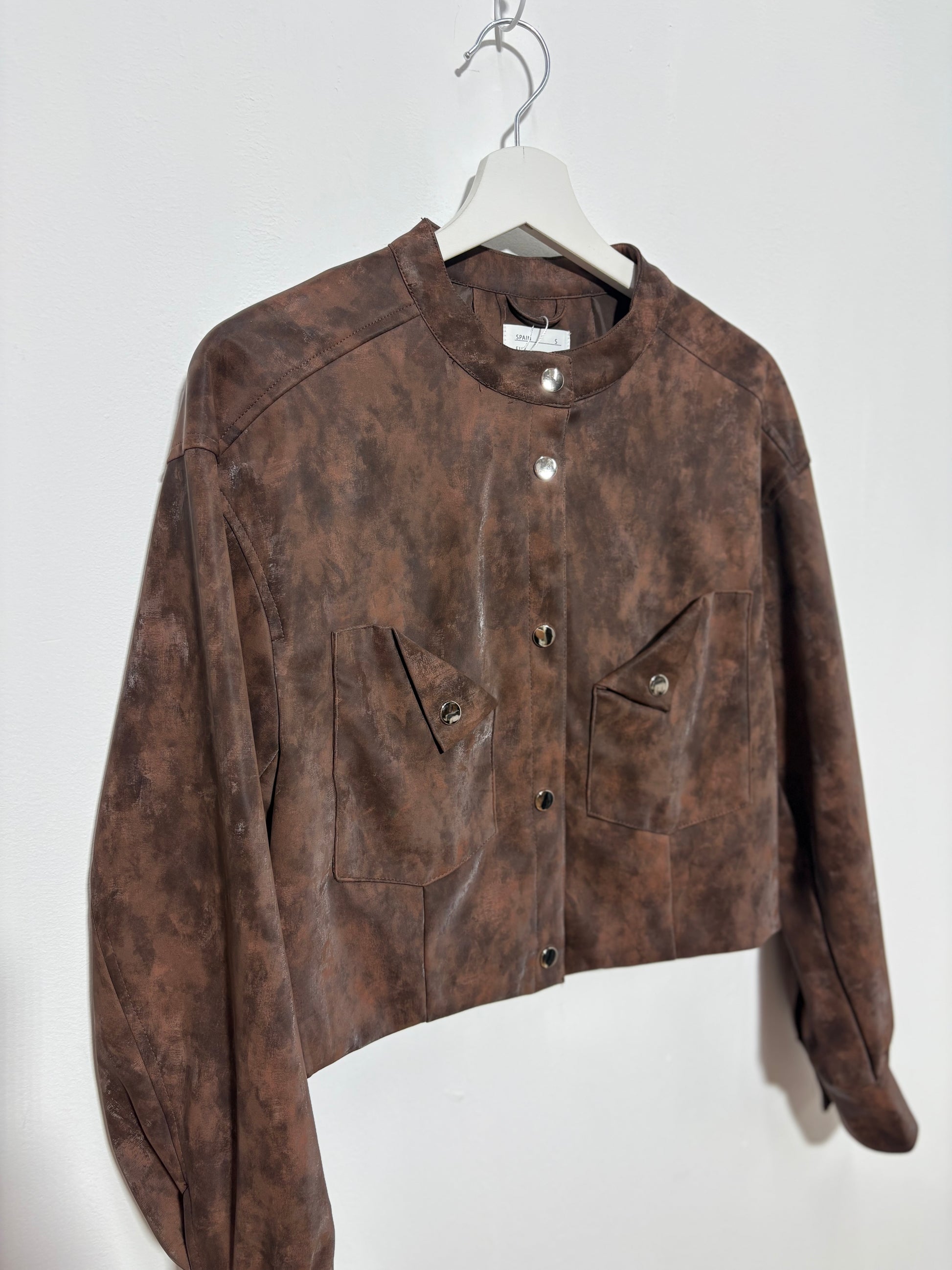 Chaqueta tipo bomber con botones metálicos de mujer marrón chocolate – Trapío