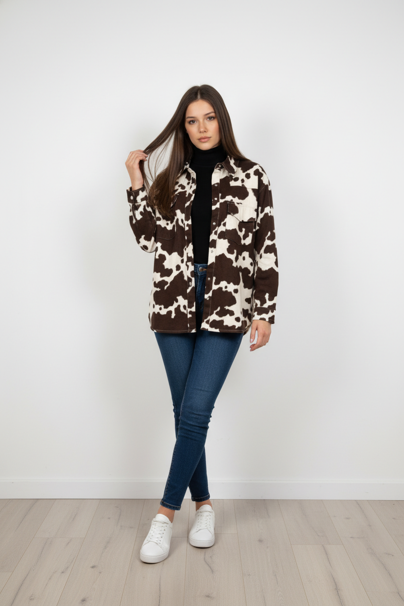Sobrecamisa Estepa Brava – Vaquera con estampado de vaca y botones de presión | Trapío